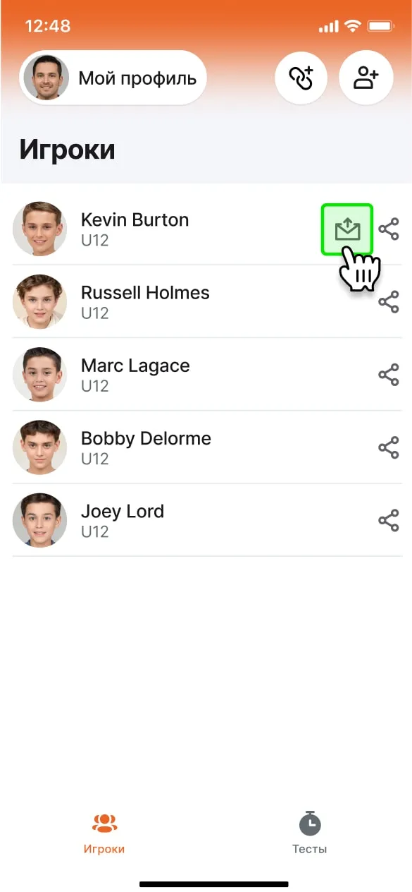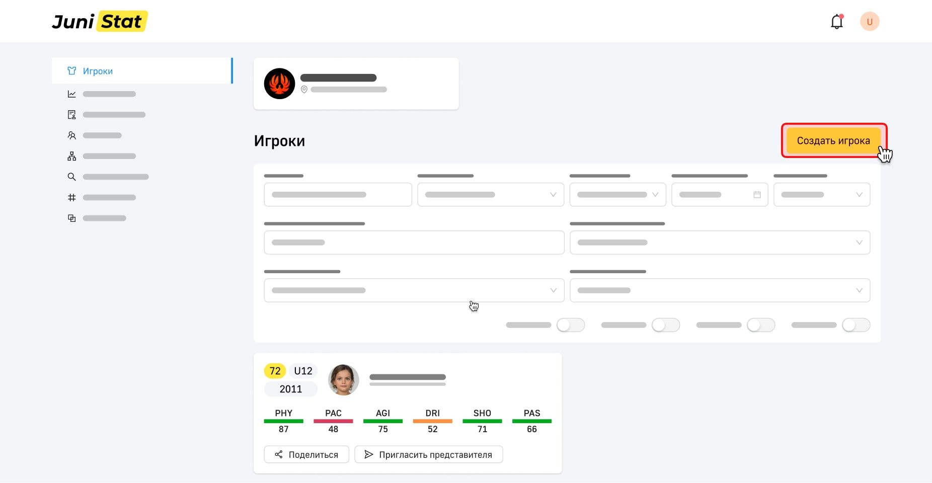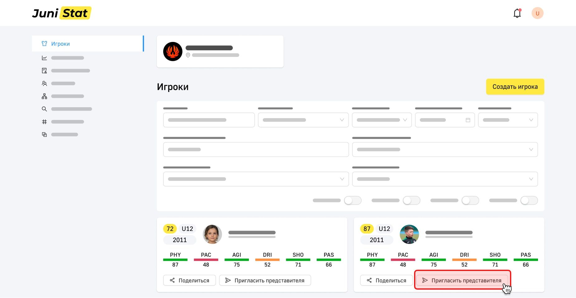 Создайте игроков в вашем аккаунте Академии и свяжите их с представителями с помощью ссылки для приглашения