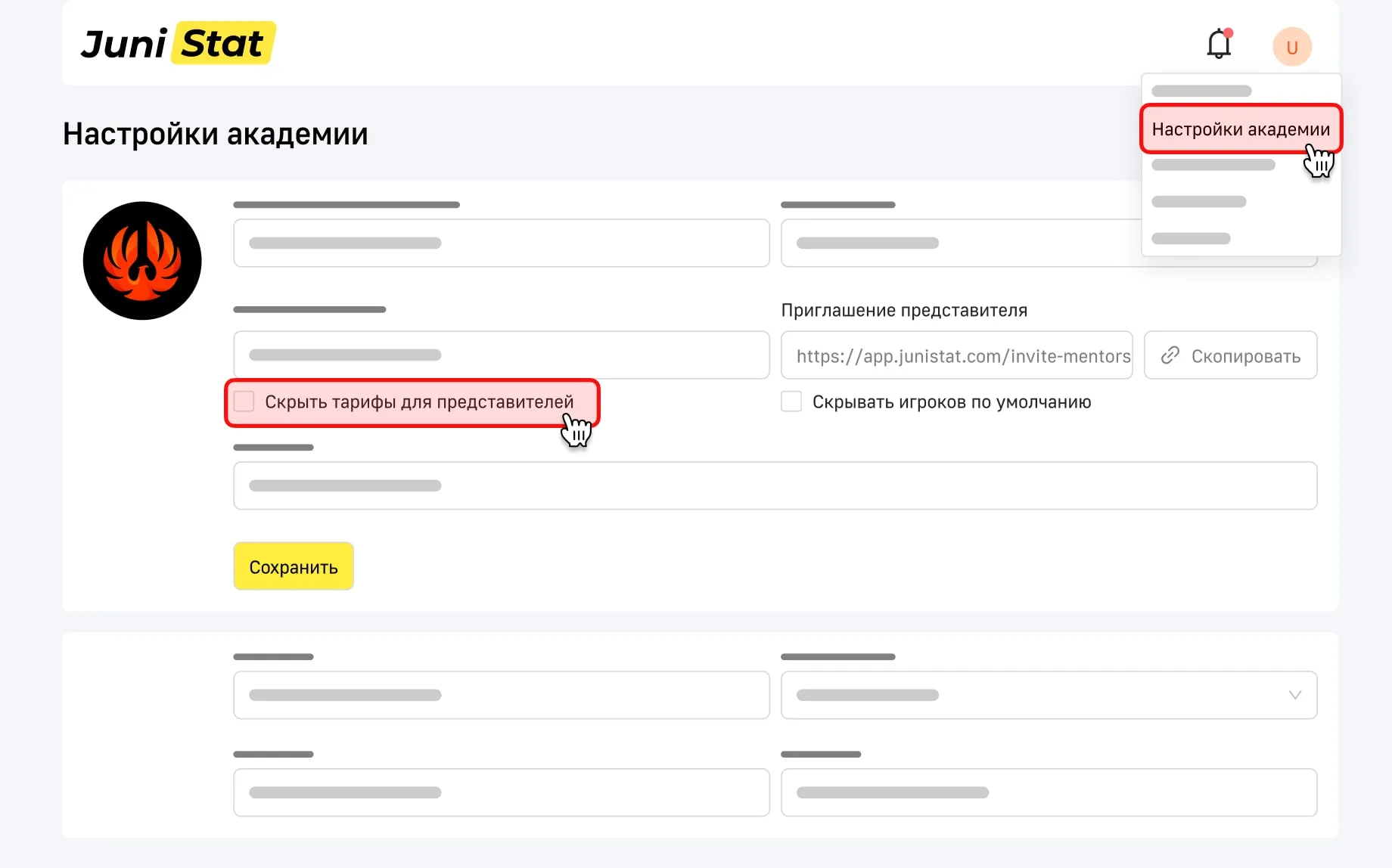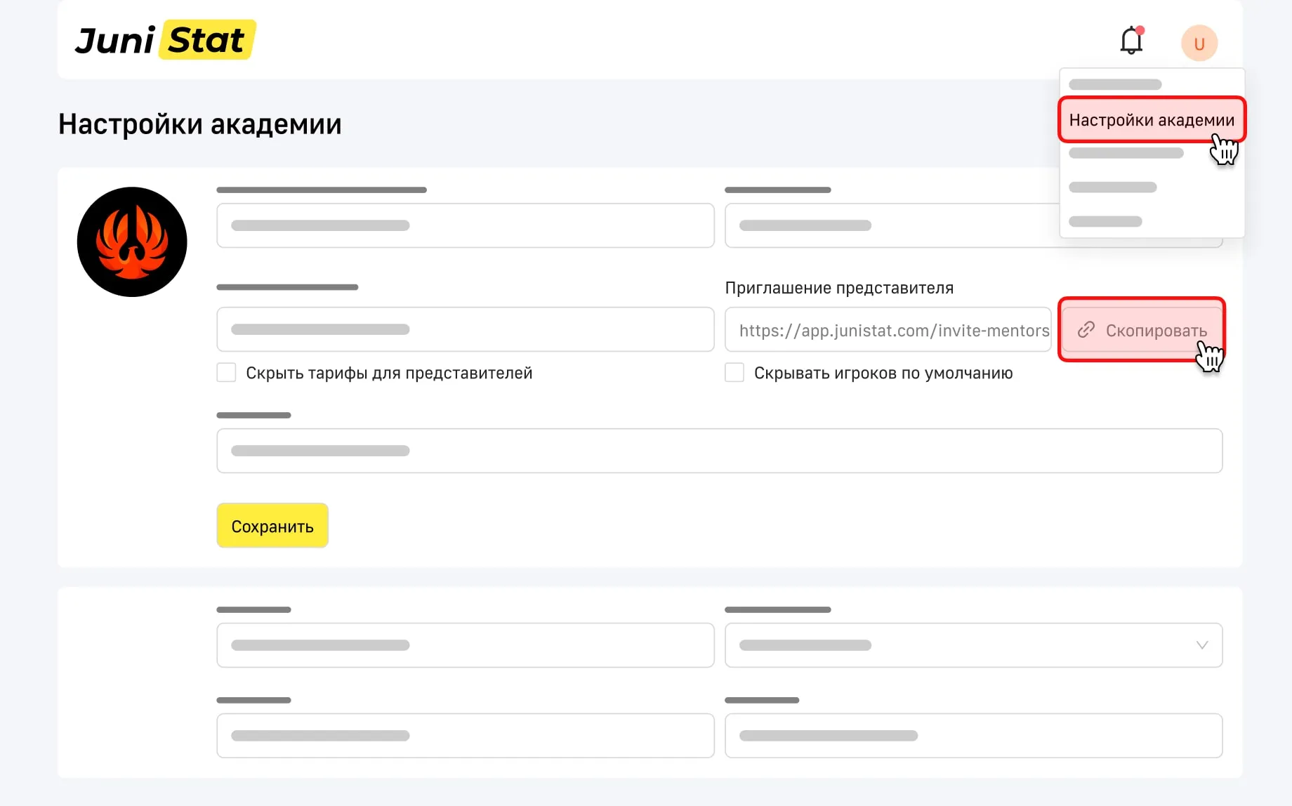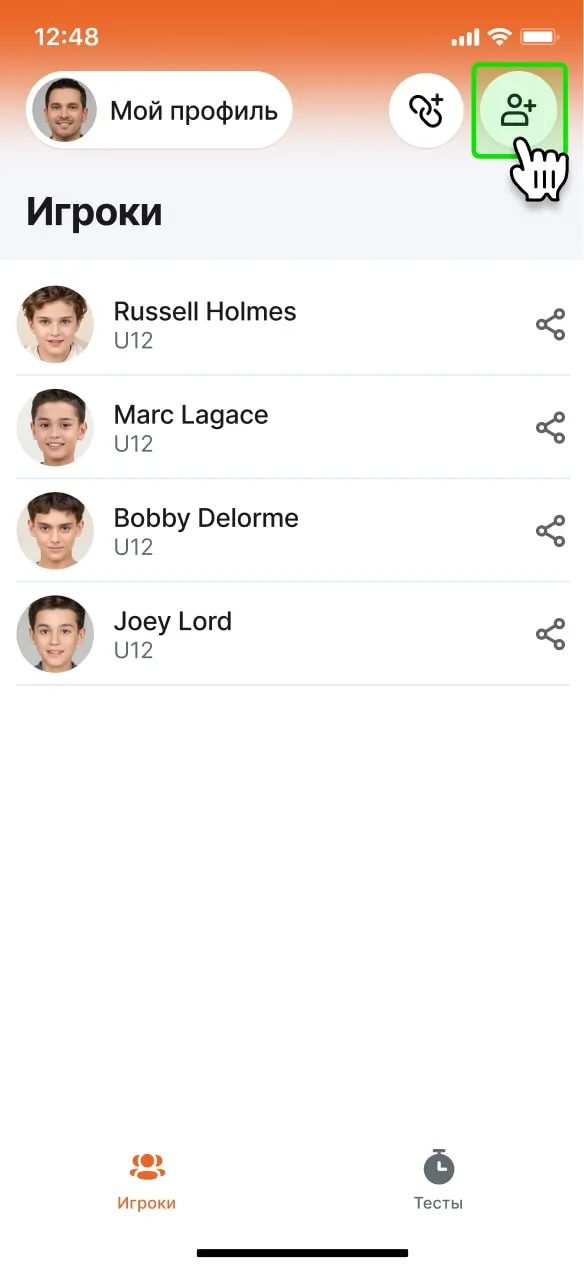 Создайте игроков в вашем аккаунте Академии и свяжите их с представителями с помощью ссылки для приглашения
